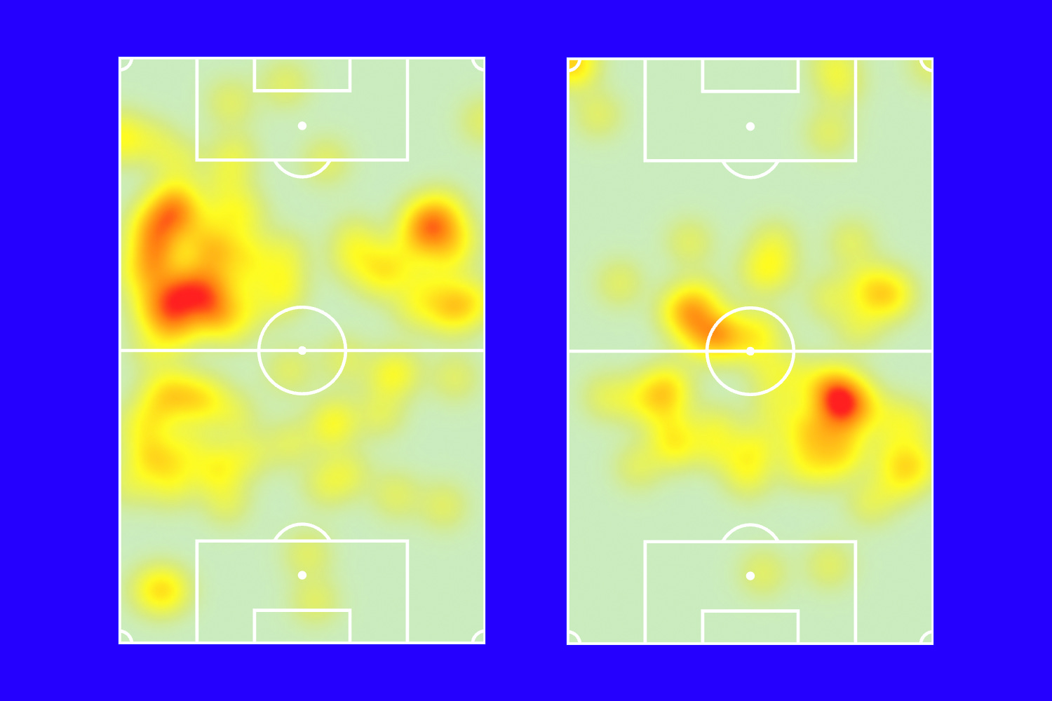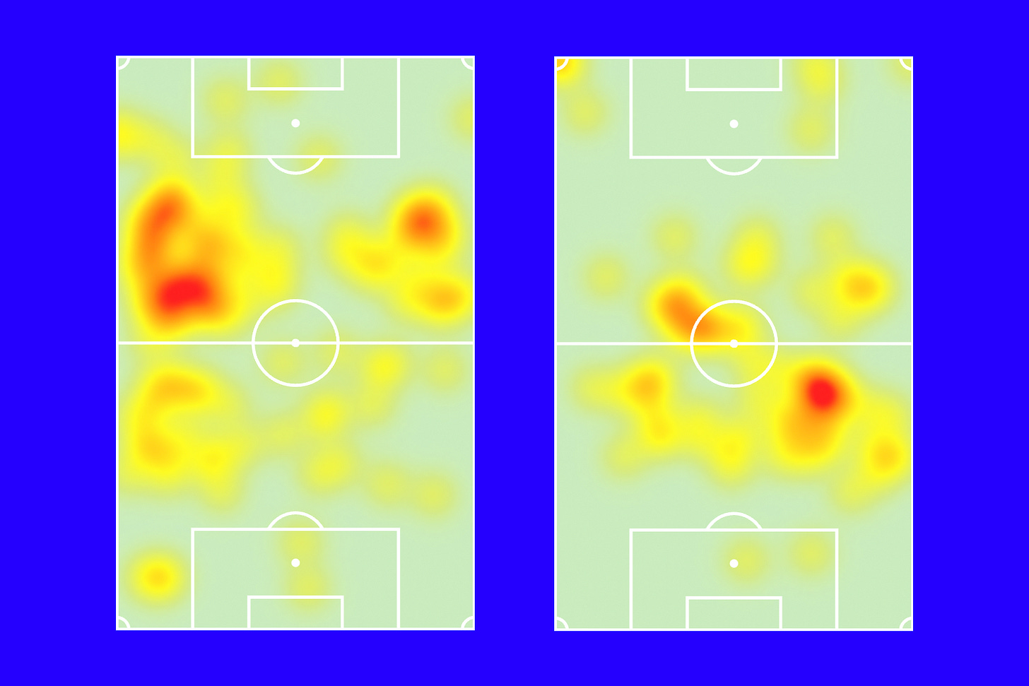 Above are two typical heatmaps comparing last season to this. On the left, a late-season clash with Inter weeks before his ACL injury, and on the right, the aforementioned 5-0 drubbing of Lazio. The difference is staggering, and he’s gone from a player specialising in sideways mobility and neat exchanges of play, to a frothing-at-the-maw ball-winning No.6 whose main task is to move “the mixer” right into the opponent’s face. And he’s really good at it.