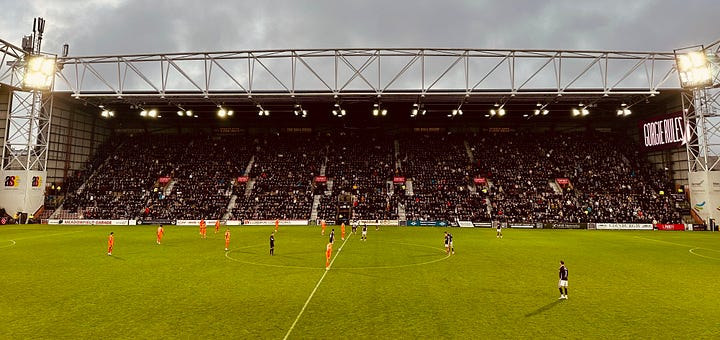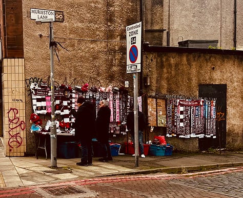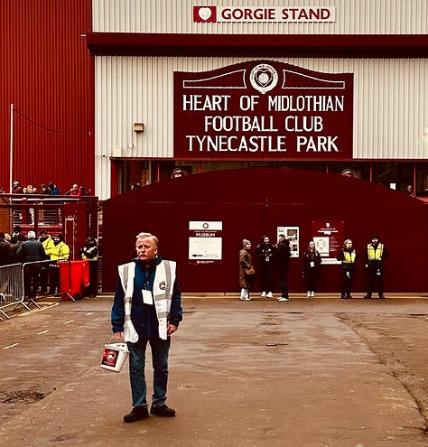 Up close to where Walter Scott sat distinctly unamused by the blazing festivities surrounding him, an old couple kissed goodbye for now. The woman straightened her man’s maroon and white scarf and despatched him onto the number one bus. He was going for an afternoon with his other true love, and she was fine with that. As a million partners well know, bigamy is part of the deal when you chuck your lot in with someone who measures their years from August to May. He looked like the kind of Edinburgh man who could see Dave Mackay when he closed his eyes.
